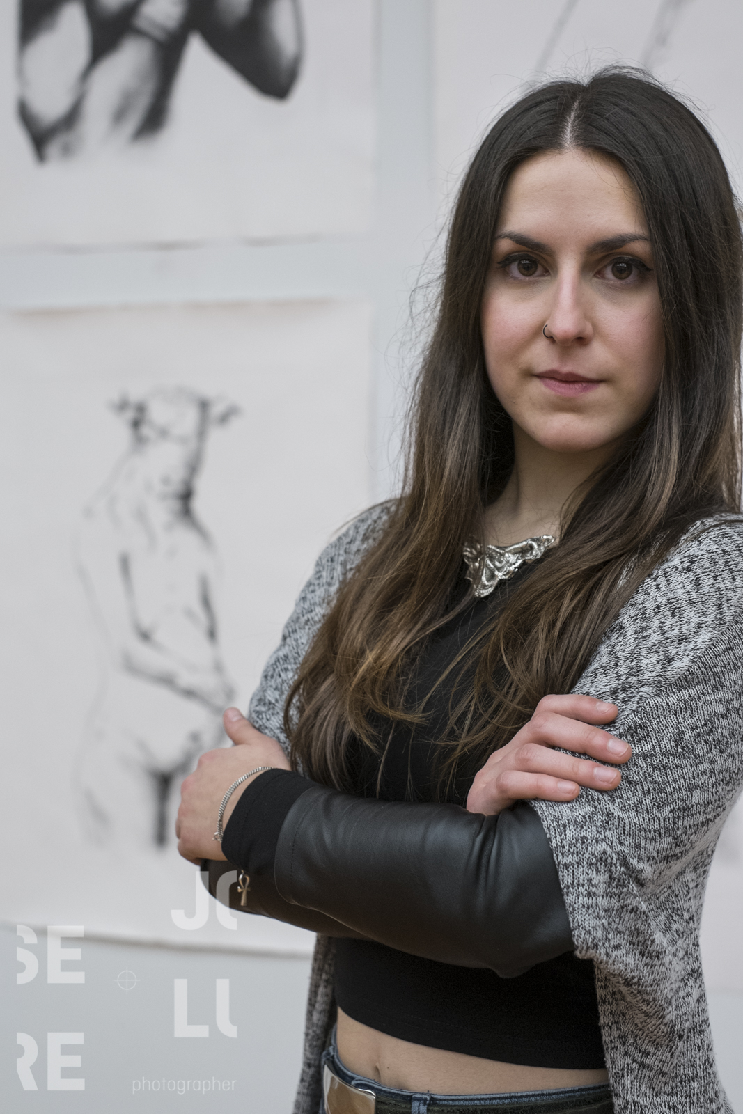 I work with anatomy and geometrical figures, sometimes combining a lot of elements to create surrealistic backgrounds which represent moods and characters of the figures I draw. I usually get along with analogic ways, thats why printmaking and etching are the sources I prefer to build my own visual language.